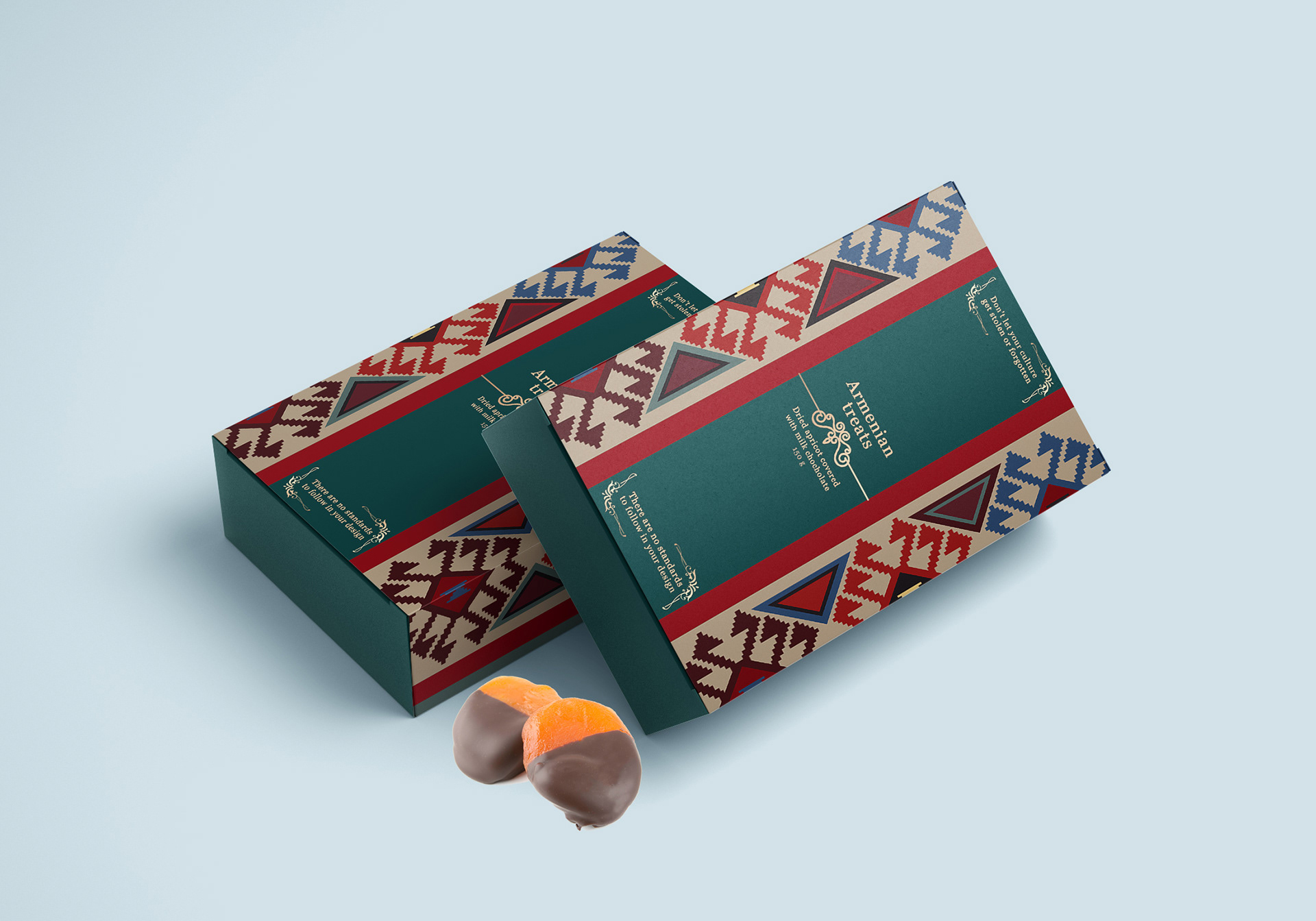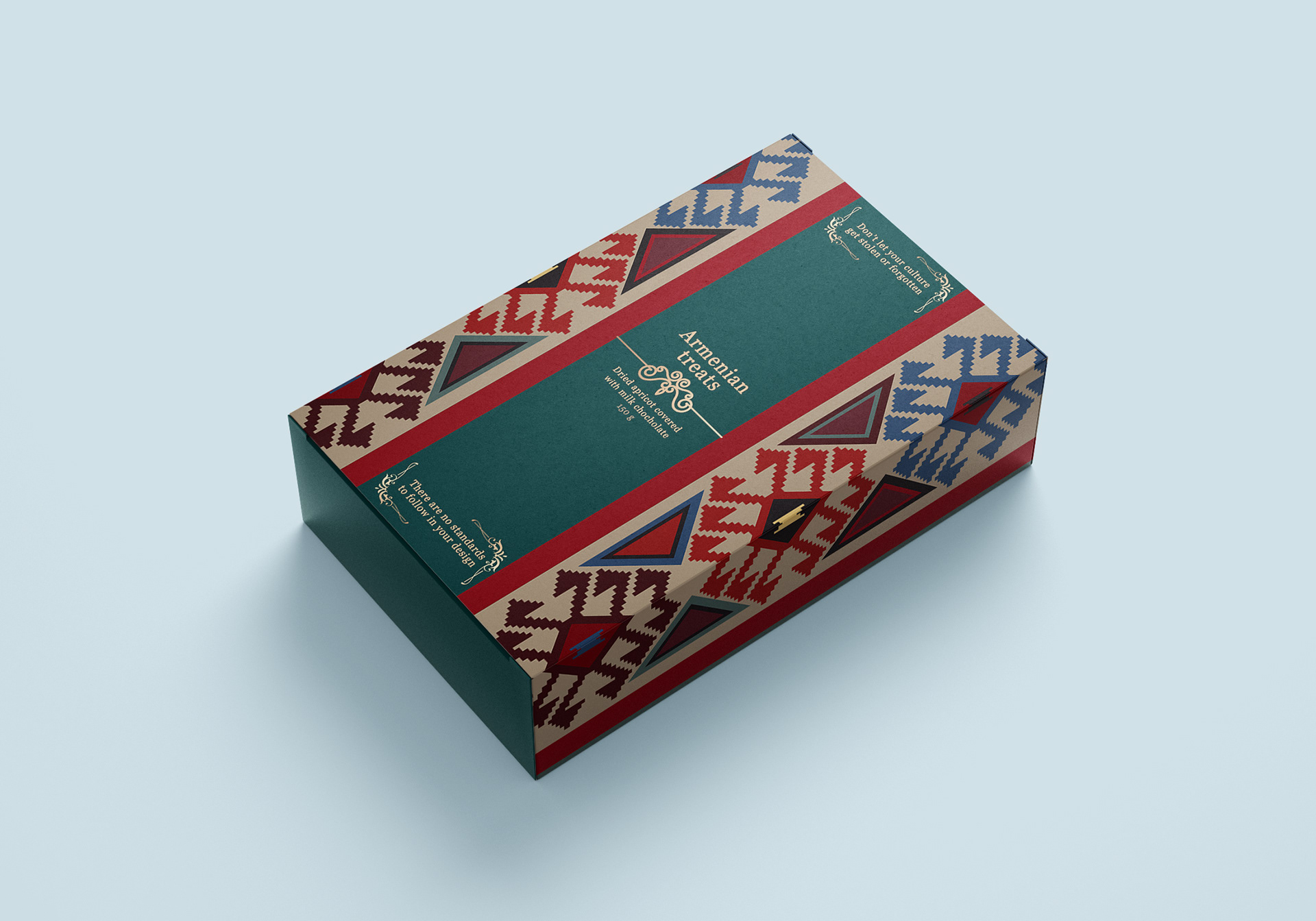 I have designed a box for Armenian treats. This packaging design shows the cultural elements of Armenia.